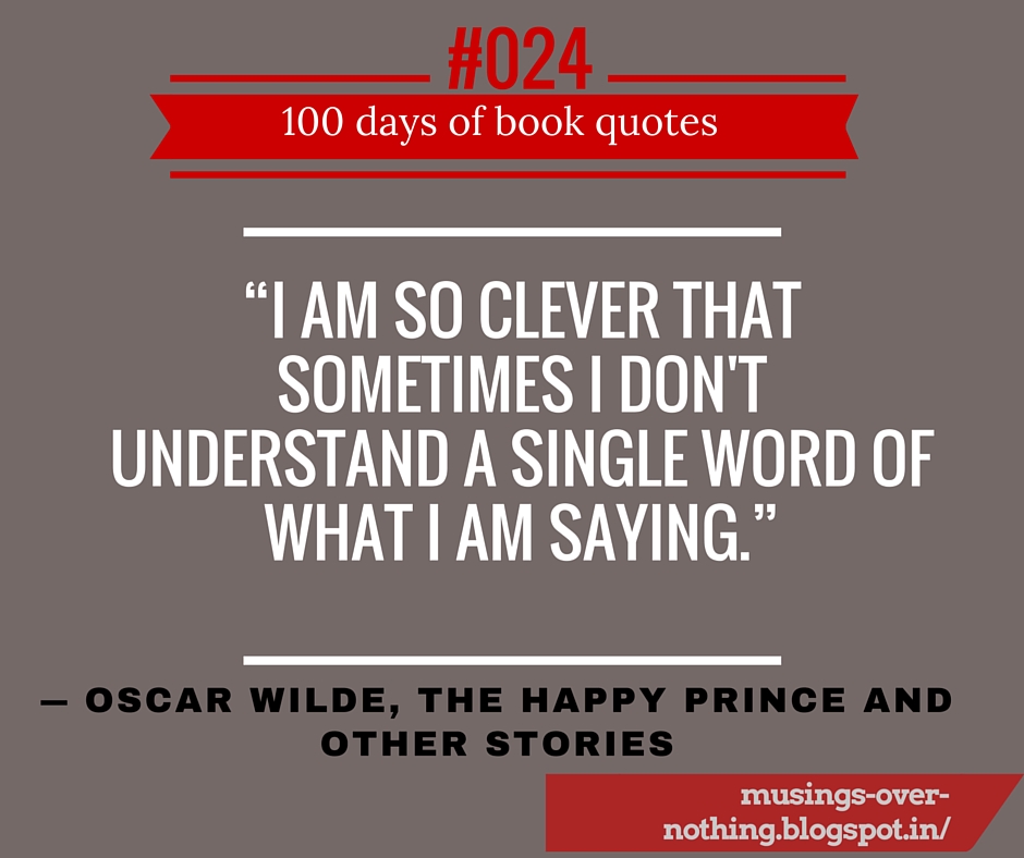 “I am so clever that sometimes I don’t understand a single word of what I am saying.” ― Oscar Wilde, The Happy Prince and Other Stories