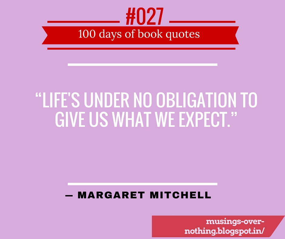 “Life’s under no obligation to give us what we expect.” ― Margaret Mitchell