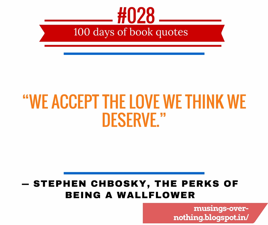 “We accept the love we think we deserve.” ― Stephen Chbosky, The Perks of Being a Wallflower